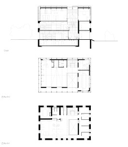 Débarrassée de son toit originel, la maison est réhabilitée en un socle maçonné à arcades surélevé d’un volume en résille bois. Dans la partie rénovée, la logique architectonique – une enceinte maçonnée subdivisée par un mur de refend et un noyau maçonné – est remobilisée au profit de nouvelles pratiques. Les espaces ouverts s’installent entre ces invariables, qui articulent zones calmes, collectives et techniques.