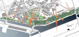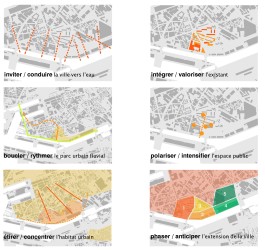 La réponse apportée propose un quartier mixte offrant activités, équipements et logements diversifiés, dans une relative densité, pour offrir une forme d’urbanité, le projet venant achever le faubourg de Saint Nicolas en respectant et en s’insérant dans le plan en étoile dessiné autrefois et proposant un système viaire composé de jetées urbaines qui offrent la possibilité à la ville et aux habitants actuels et futurs de se diriger vers les quais, l’eau et le port.