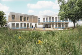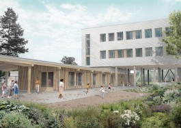 Afin de reconnecter les enfants et l’école avec la nature et le vivant, le projet se structure autour du cœur d’école évoquant la forêt et le sous-bois voisin avec une biodiversité renforcée. En préservant la topographie du site, la requalification conserve les vues longues et ouvre de nouvelles perspectives.