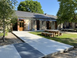 Pour ménager l’ouverture au public d’un site d’intérêt patrimonial et la découverte des artisanats du feu, des dispositifs spatiaux et paysagers instaurent une cohabitation sereine entre visiteurs et travail des artisans. La requalification propose de préserver l’esprit du lieu, tant dans l’intervention architecturale que paysagère, grâce au réemploi et à des interventions douces sur l’existant. Des éléments iconiques de l’ancienne caserne militaire sont réutilisés (portails, grilles, les marquises, etc.).